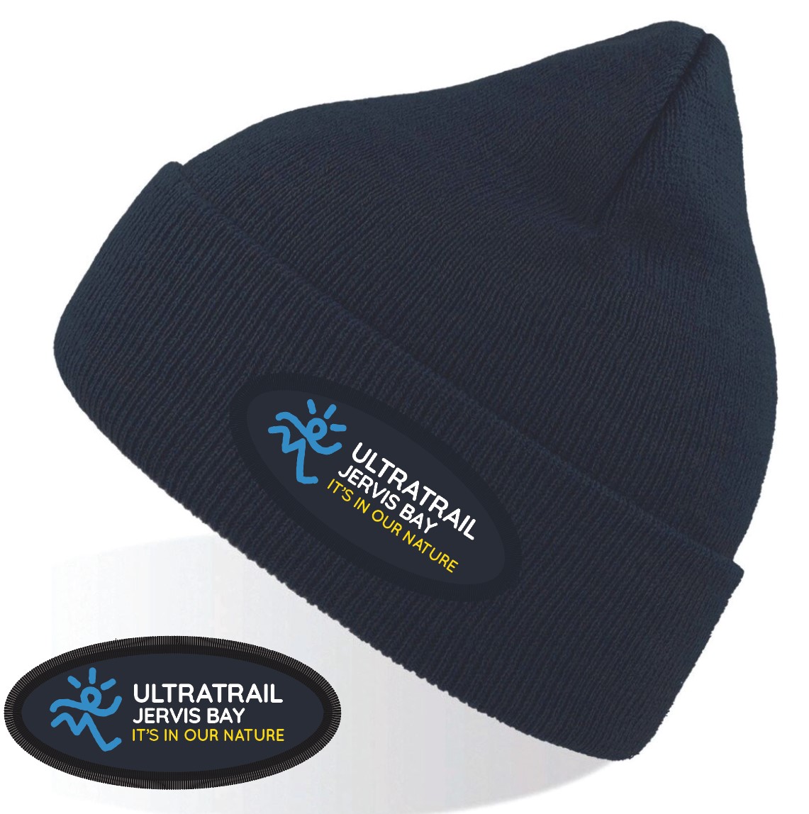 Ultra Trail Jervis Bay 2025 Winter Beanie, navy blue.